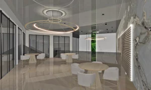 Restauracja hotelowa z designerskim sufitem – Hotel Korte, Białobrzegi
