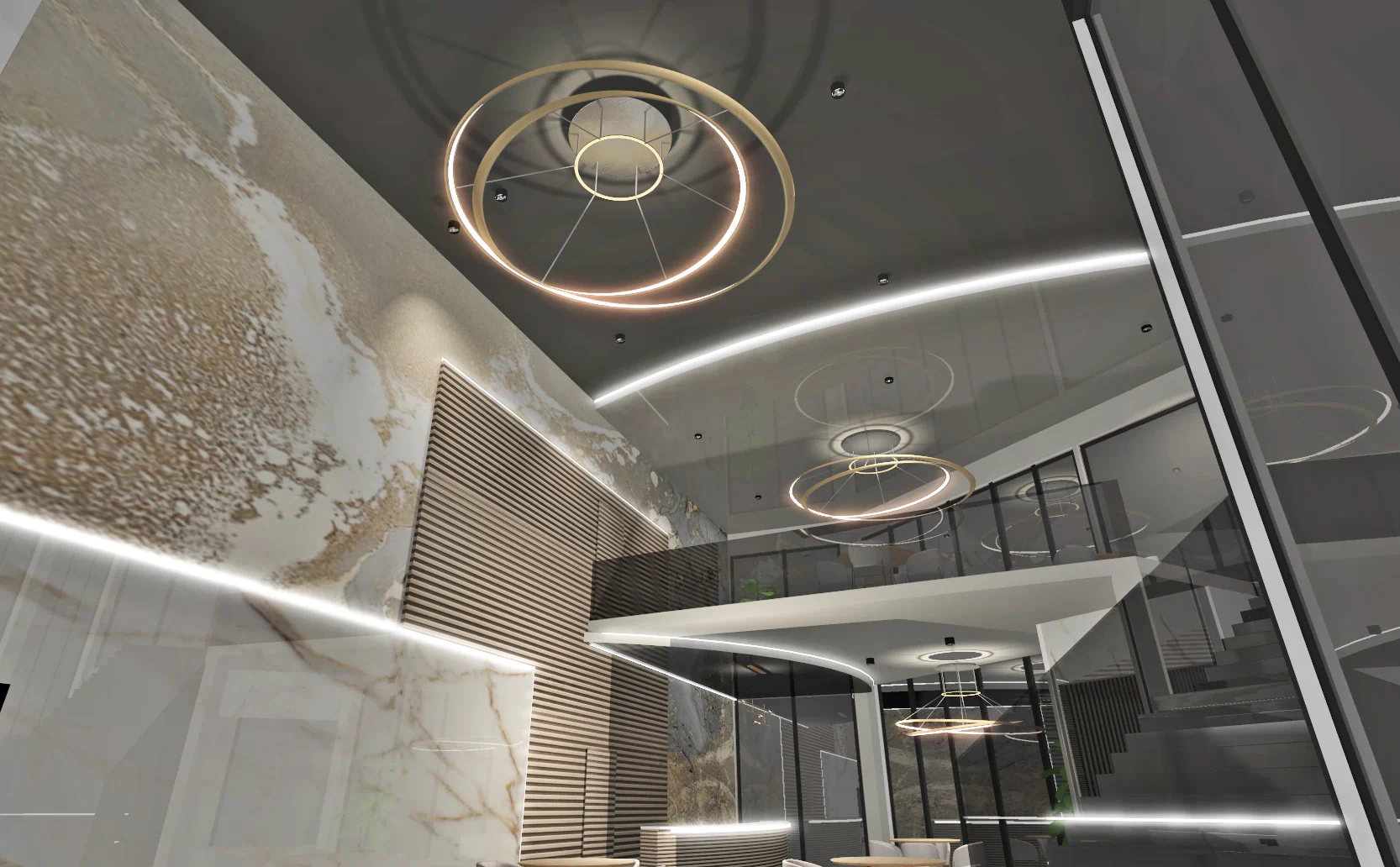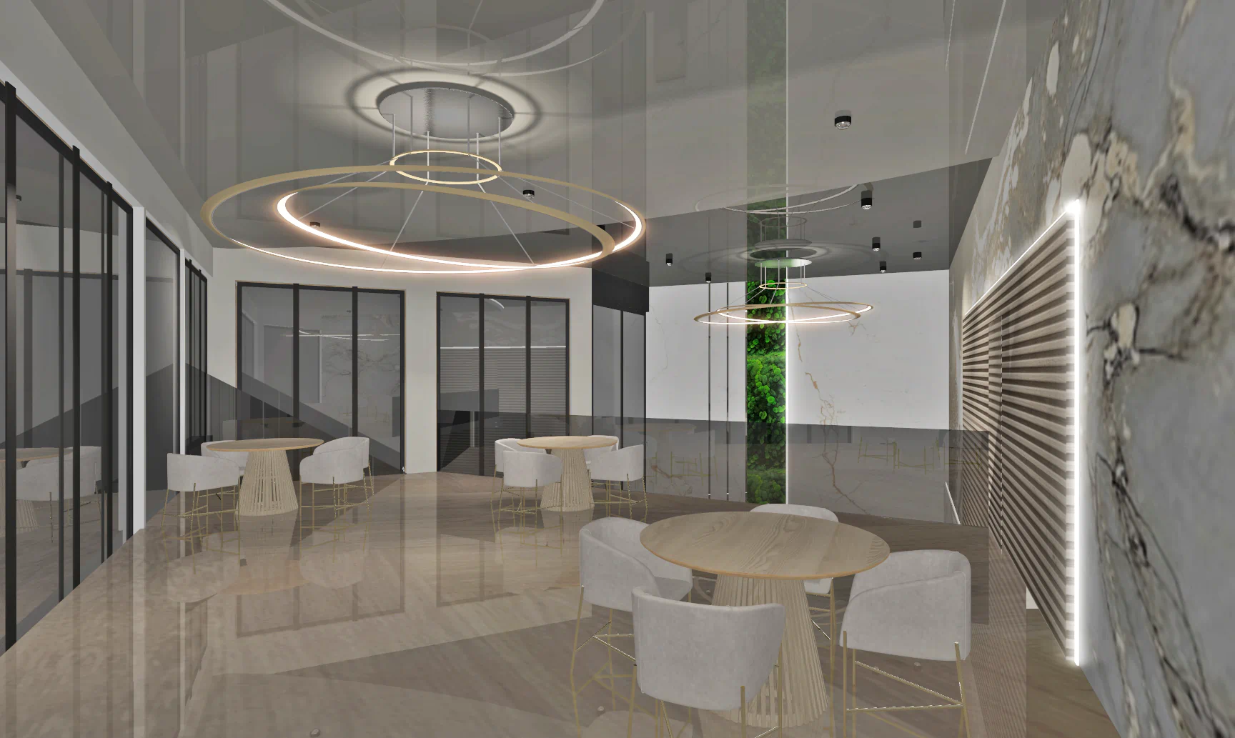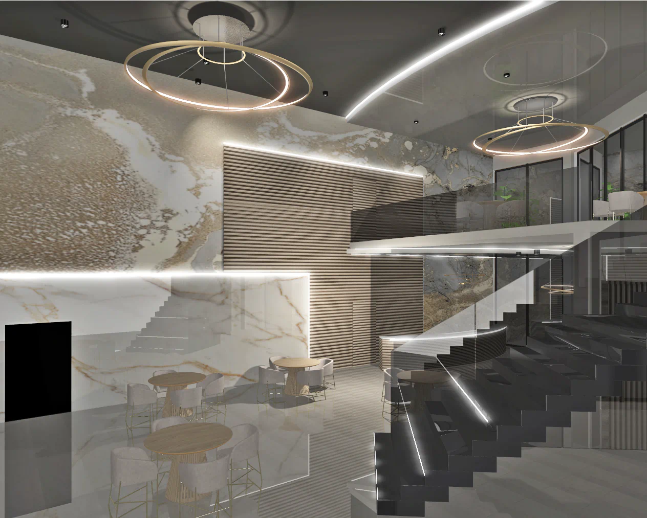 Restauracja z antresolą i nowoczesnym oświetleniem – Hotel Korte, Białobrzegi